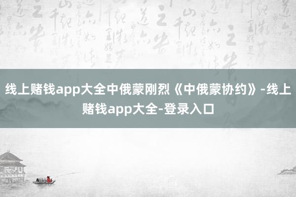 线上赌钱app大全中俄蒙刚烈《中俄蒙协约》-线上赌钱app大全-登录入口