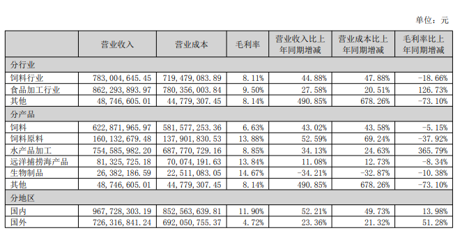 从业务结构看,粤海饲料仍以饲料销售为中枢(占营收90.25%),同期动保居品销售增长16.42%,国外商场营收增速达75.02%,泄露出多元化布局的初步收效。不外,公司毛利率同比下落1.29个百分点至9.64%,净利率仅0.04%,盈利空间仍需进一步拓展。