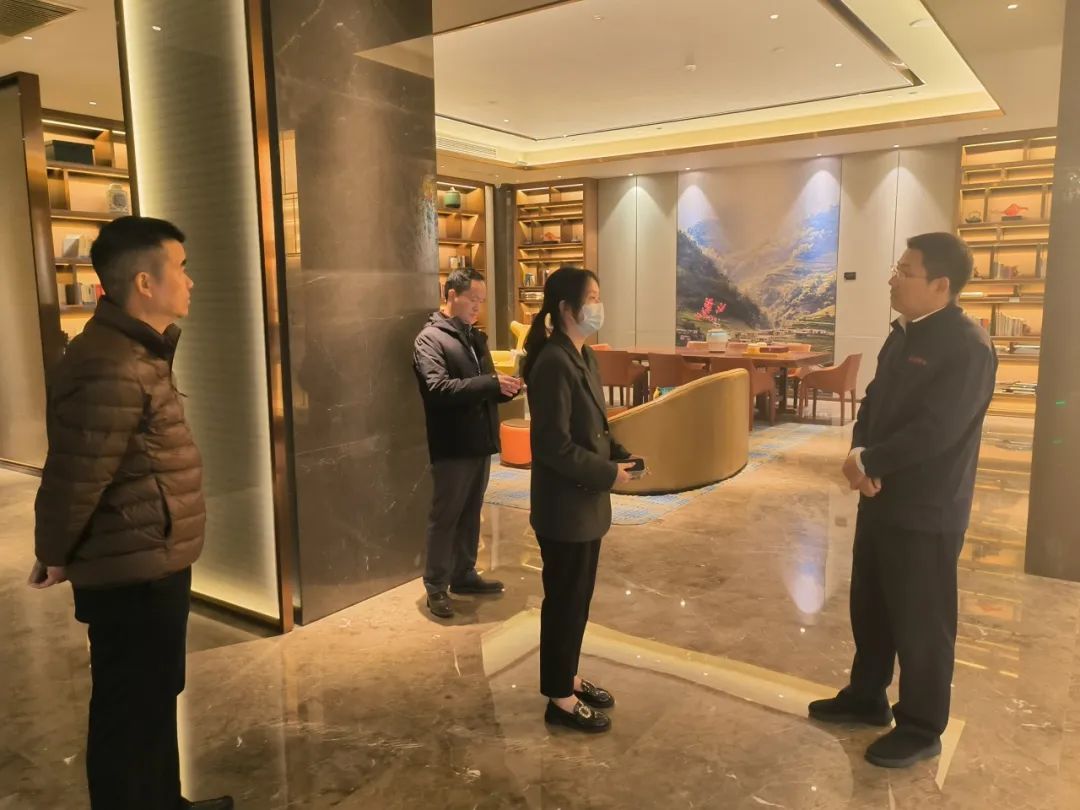 ▲党工委副布告陈伟民到亚朵栈房开展督导检察