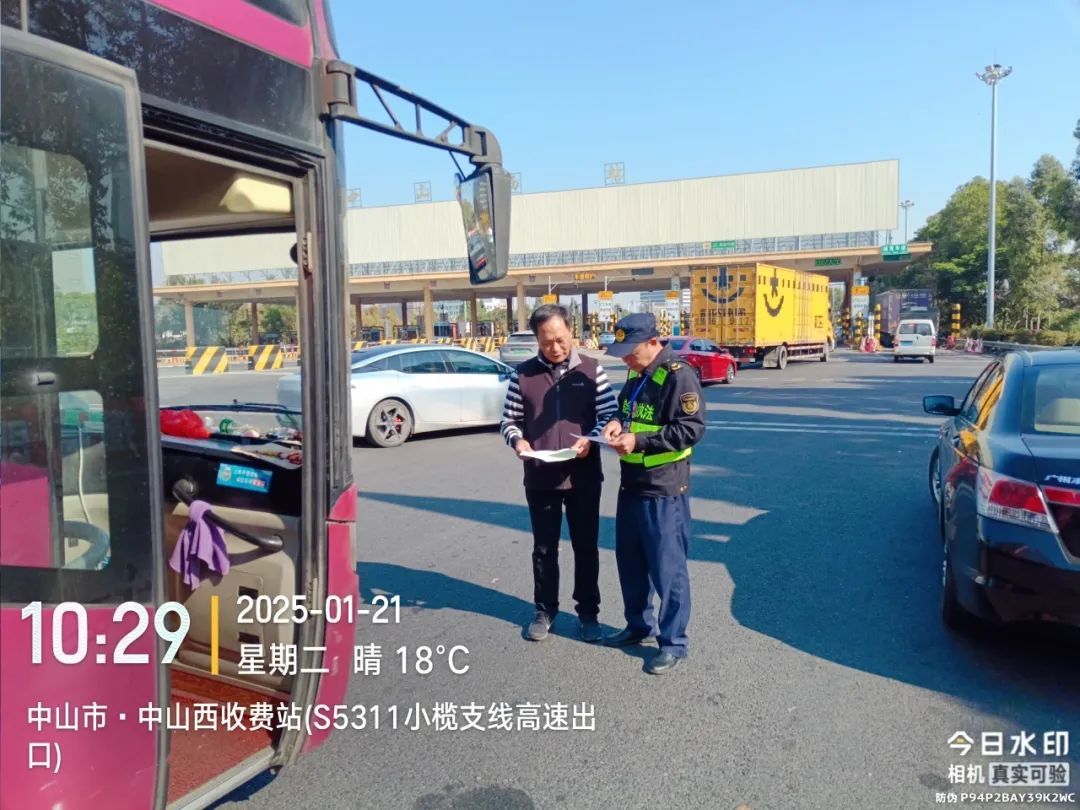 ▲西区街说念党工委布告郭卫华,西区街说念党工委委员、奇迹处副主任黄惠洪带队赶赴中山西站高速口进行安全检察