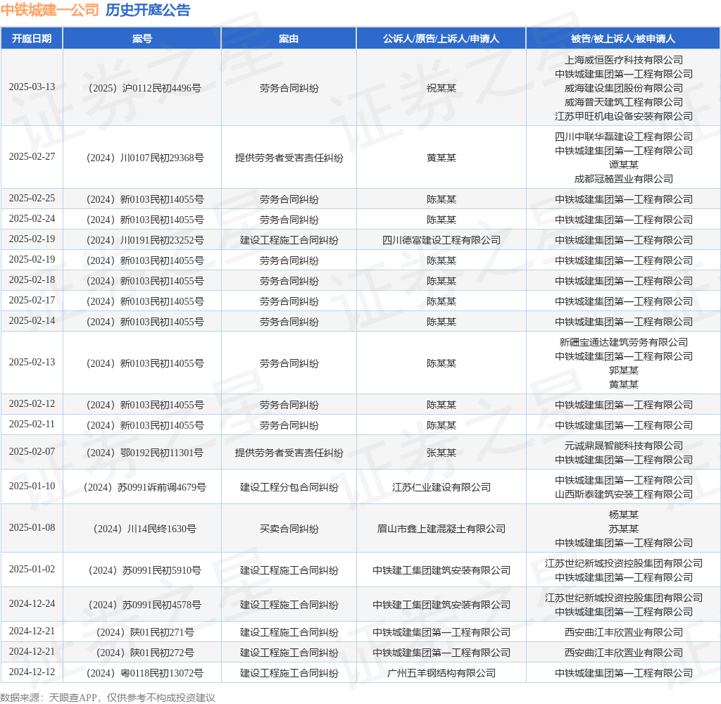 本站音书,凭据天眼查APP闪现,近日公布了一则中铁城建集团第一工程有限公司算作被告/被上诉东说念主的开庭公告,注重现实如下: